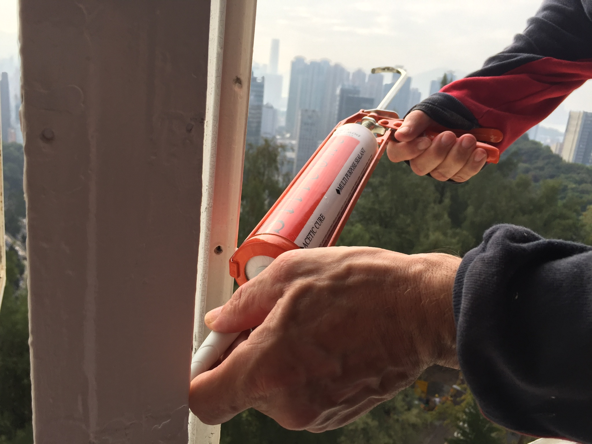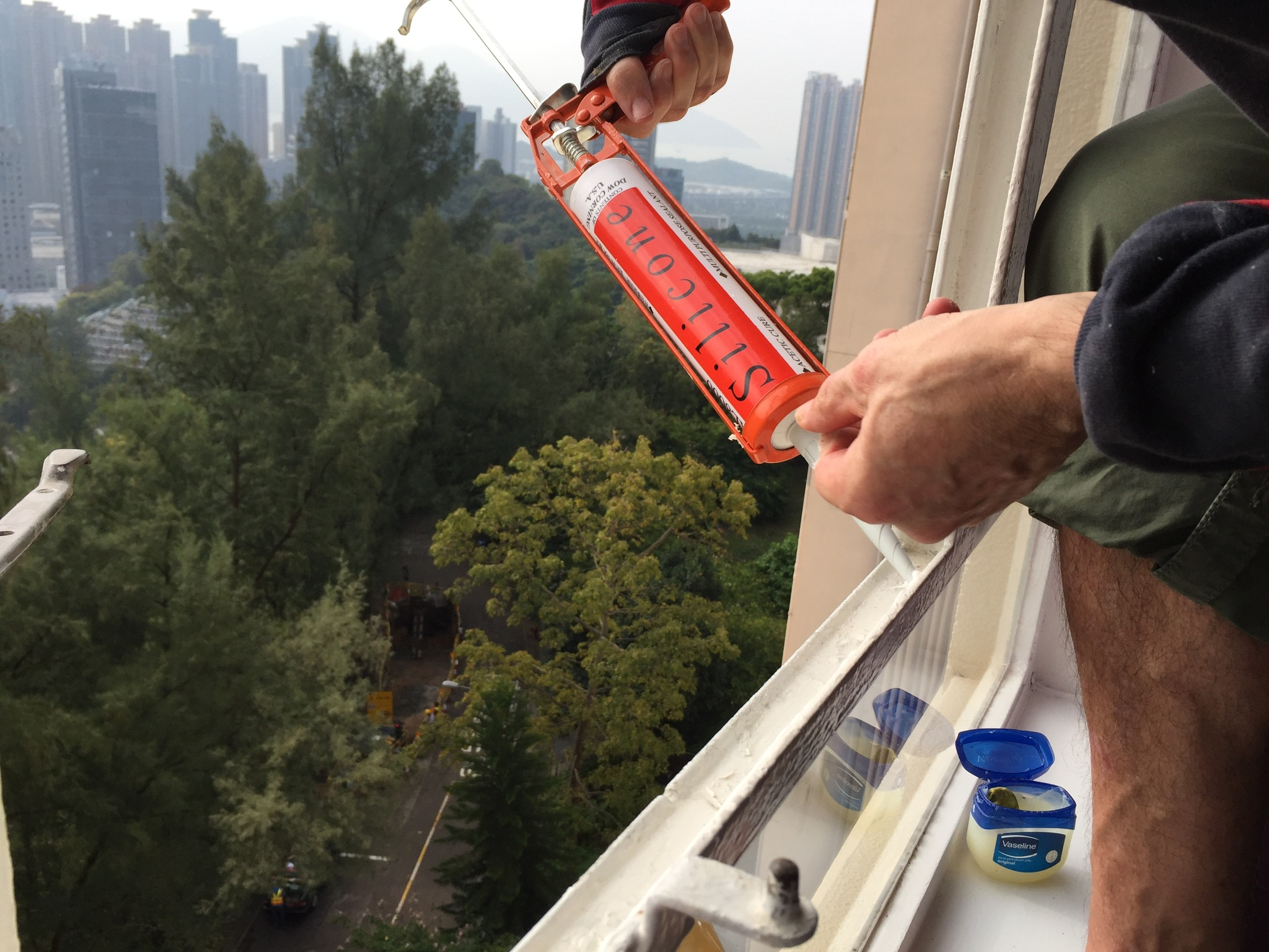 We recently completed our first international assignment. The problem of metal casement windows has bugged us for a long time. The window casements and top hung lights remarkably tend to warp and deform giving rise to draughts through awkward small and slightly tapering cracks. These are unsuitable for draught strips and have been professionally remedied by specialist companies using silicone sealants applied to the frame and a release agent to the casements. We have followed this same process noting that it is crucially important that the frame is perfectly clean and free of all dust, flaking paint and is dry before applying the silicone. On closing the window the silicone forms a perfect seal filling all the gaps of whatever size and shape that they may be. Once cured, typically after four or five hours depending on the thickness and type of silicone and on the humidity, the window can be opened and the release agent, in our case simply liberally applied Vaseline, must then be cleaned off both surfaces with an absorbent cloth and washed with detergent and water a couple of times then wiped clean with water. Any overspilt sealant that may have squidged out can be carefully cut away with a sharp knife it is better to tool the silicone back to the frame on closing the window.